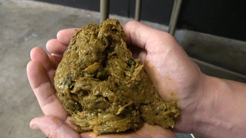 大量に排泄される糞尿が顔面に密着する巨尻の深い亀裂からあふれ出る